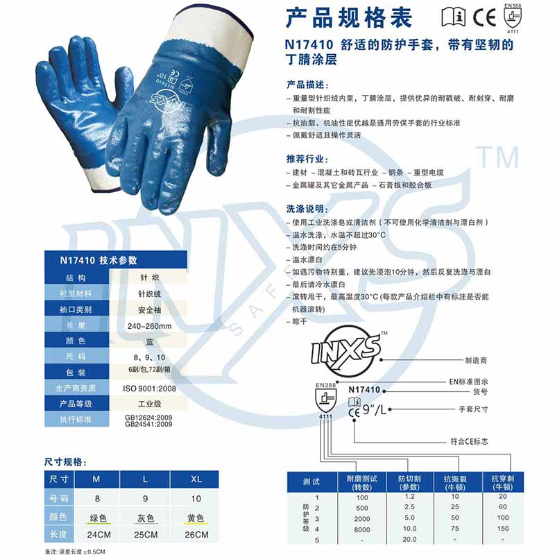 产品名称:赛立特/INXS 丁腈手套耐油耐磨劳保手套N17410